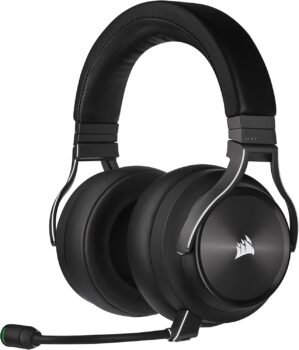 A top-tier wireless gaming headset with Dolby Atmos spatial audio, broadcast-quality detachable mic, iCUE compatibility, and multi-platform Bluetooth support for serious gamers and streamers.